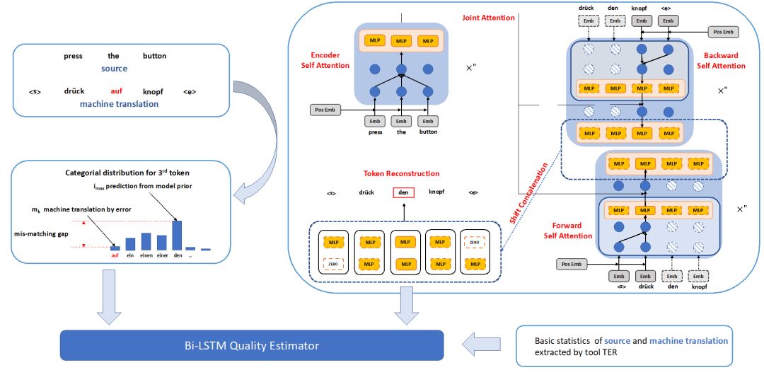 Machine Translation Quality Estimation 就是这样一个由 WMT 发起的机器翻译质量评估比赛,它要求在不提供参考译文的情况下,根据原文和机器翻译译文评估译文质量的好坏。