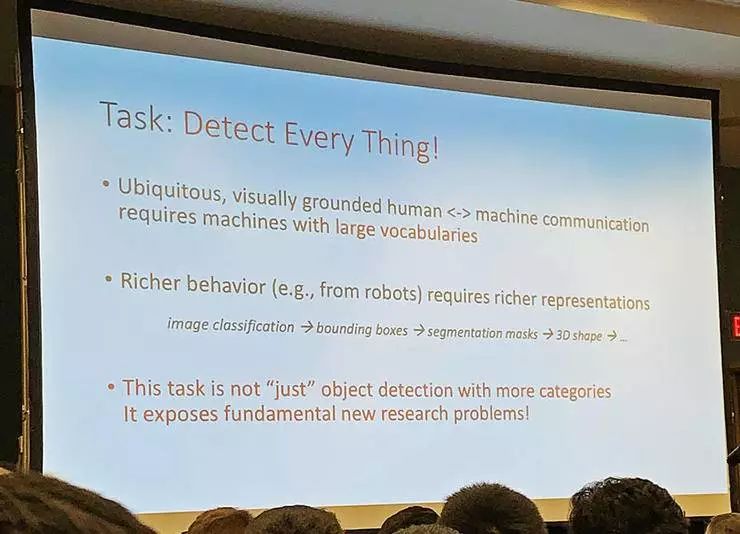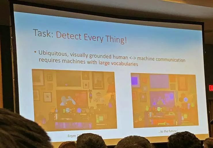 相比于当前的数据集、当前的对象识别任务中只检测主要的一些物体,如果要检测场景中的所有物体,这有一系列不同:首先需要大幅扩充词汇库,其次,如果希望能服务更丰富的行为的话也需要更丰富的表征。实际上,要检测所有的物体,其实并不仅仅是检测更多类别而已,它会启发很多全新的研究课题。