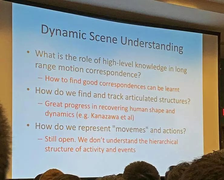 Malik 说,其实许多年前的演讲中他就曾讨论过未来:在 2004 年他就做过以《The Hilbert Problems of Computer Vision》的演讲,提出了一些对于计算机视觉系统的问题,希望未来的研究可以给出答案;然后在 2015 年,他做了《The (new) Hilbert Problems of Computer Vision》的演讲,为 2004 年提出的问题给出了一些回答,也提出了新的问题。他说他挺喜欢这个模式的,这个问答过程就是很好的预测和回顾,而且现在我们还可以回过头看以前对更早的问题的回答,以此作为预测未来的参考。唯一的遗憾是,今天这次演讲在 2019 年,距离上一次 2015 年的预测稍微近了点。