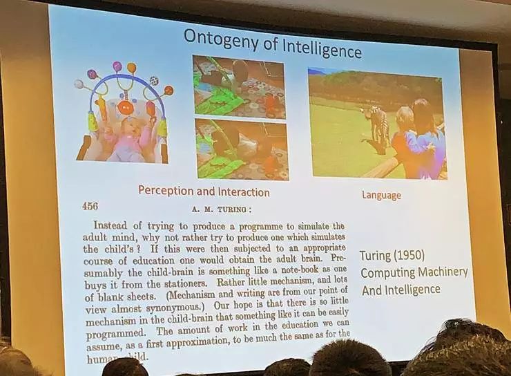 Malik 回忆了图灵当年在图灵机论文较为靠后的章节里对智慧的表述,然后说我们的视觉感知发展之路可以像人类小孩的学习一样经历六个方向的发展。