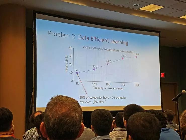 数据中的长尾特性是不可能消除的,检测不同类别对象的 mAP 有明显的高低区别,而且 Ross 认为当前的小样本学习根本就还没发展到可以解决问题的程度。从小样本中学习的能力真的是未来五年中的一个非常重要的课题。