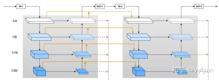 一个FPN有效,2个FPN是否有效,MSPN当然还有其他创新点,不同于FPN固定通道256,而是与backbone一致,同时还有一个特征融合模块,解决梯度消失和特征重利用。这个是做姿态估计的,其实这个结构在其他任务上也是work的。