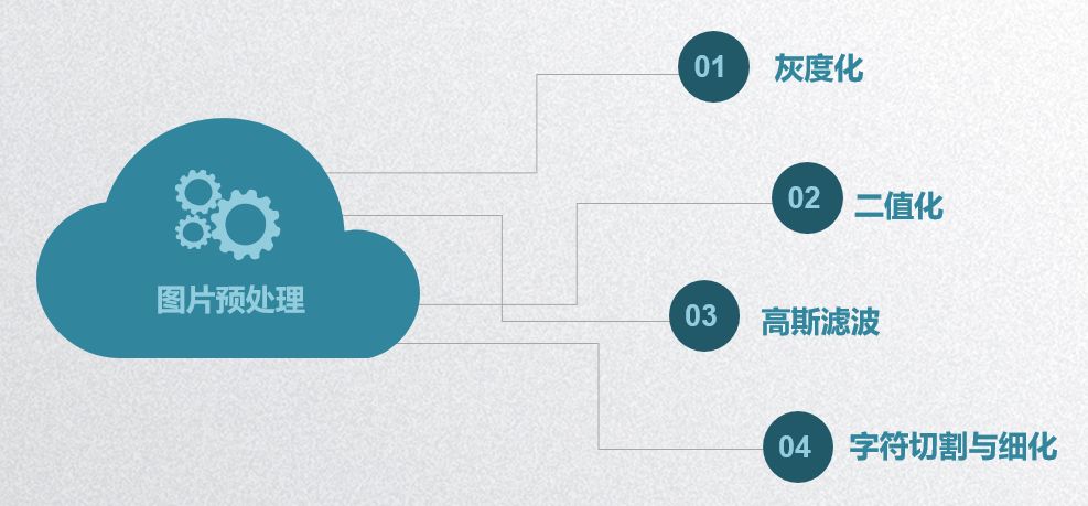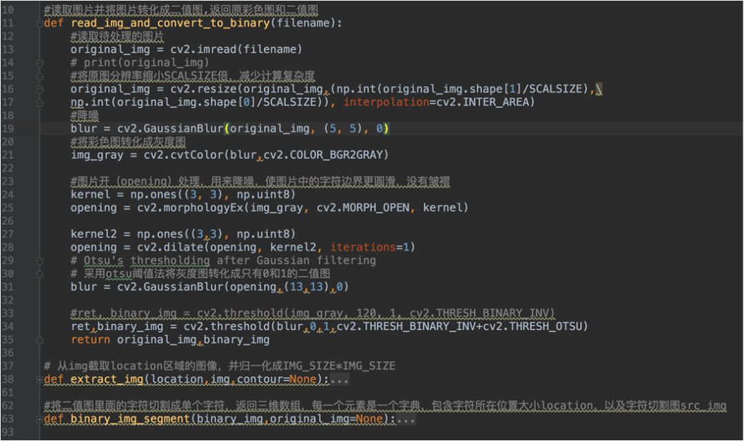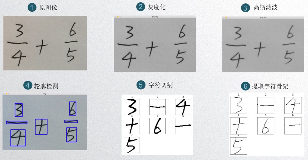 预处理主要包括:灰度化、二值化、高斯滤波、字符切割与细化。