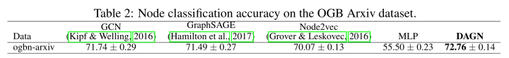 原文指出:DAGN = GAT + diffusion + layer normalization + residual connection,在Cora分类中,DAGN=85.4,GAT = 83,而DAGN - diffusion = 83 ,没有进行GAT+layer normalization 或 residual connection的实验