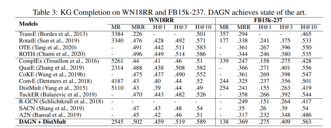 知识图谱补全实验,也取得了state-of-the-art 的性能表现,结果如下:
