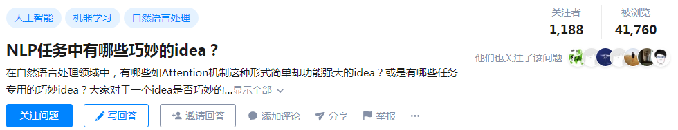 导读:近期,小编在知乎中关注到了一个有意思的话题 "NLP 任务中有哪些巧妙的idea?" ,目前已经有1188+关注,40000+浏览量,今天小编就为大家分享下获得最高点赞的答案,复旦大学邱锡鹏教授的回答: