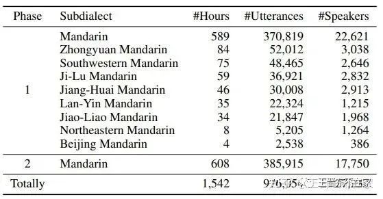 KeSpeech包含了来自27237个说话人、34个中国城市、1542个小时的普通话+8种方言的数据,用来进行跨语言语音识别、预训练等任务。