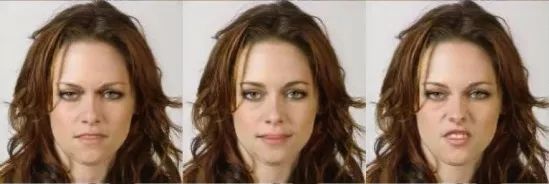 之后,研究人员又在RaFD数据集中训练模型合成面部表情。在训练中,他们将8种不同表情定义为8个域,并把它们固定为“中性”表达式,当输入一个目标域后,这个域就成了一个“异类”,StarGAN要做的只是在一张“中性”人脸中加入特定面部表情。