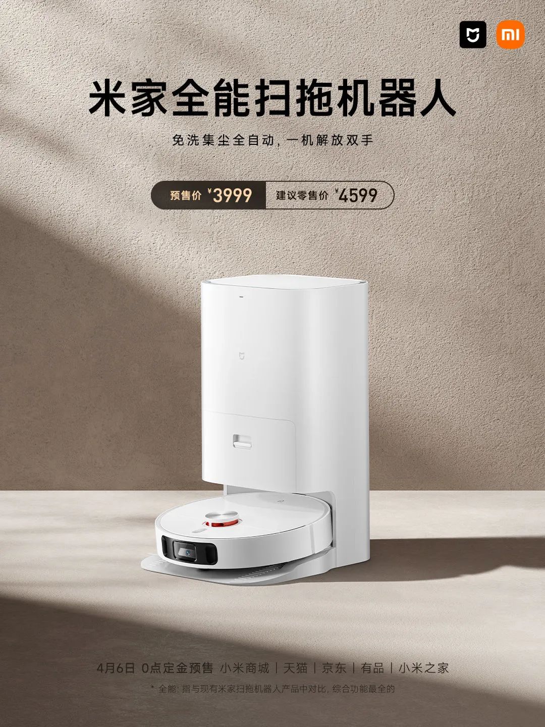 【小米推出米家全能扫拖机器人:洗拖烘一体】