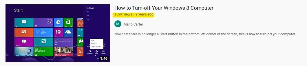 这就是为什么,油管上一个“如何关闭你的 Windows 8 电脑”的视频能收获近 16 万的播放量。