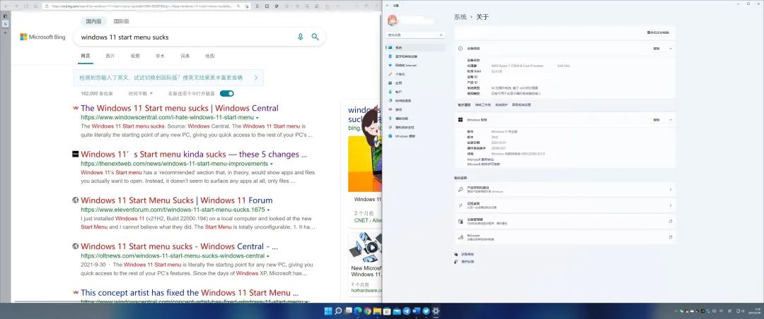 AMD 专属 bug 至少是得到了修复,可是呢,Windows 11 还有大大小小数量众多的 bug 有待修复。其中输入法切换时屏幕闪烁的问题,几乎从初始版本延续到最新的预览版,至今仍待修复。