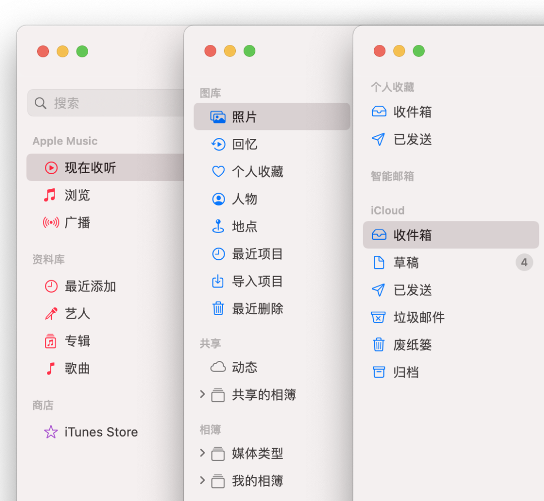 在 macOS Big Sur 和 iPadOS 14 上,多个系统应用统一了边栏(Sidebar)和工具栏(Toolbar)的设计语言来承担相应职能。