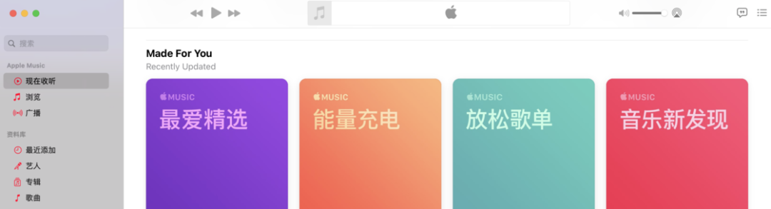 音乐 App 方面,「为你推荐」Tab 栏被「现在收听」取代,这里会展示根据算法为你推荐的新发行作品、音乐人采访、以及个性化歌单等内容。