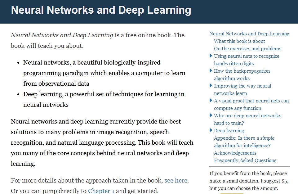 如果你对机器学习和深度学习不熟悉,但渴望深入了解其理论方法,Nielsen 的书应该是你的首选。这本书比 Goodfellow 的《深度学习》要更容易阅读,而 Nielsen 的写作风格加上一些的代码片段使得知识更容易融会贯通。