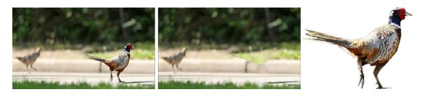 原图,inpainting 处理后的背景,matting 处理后的前景。