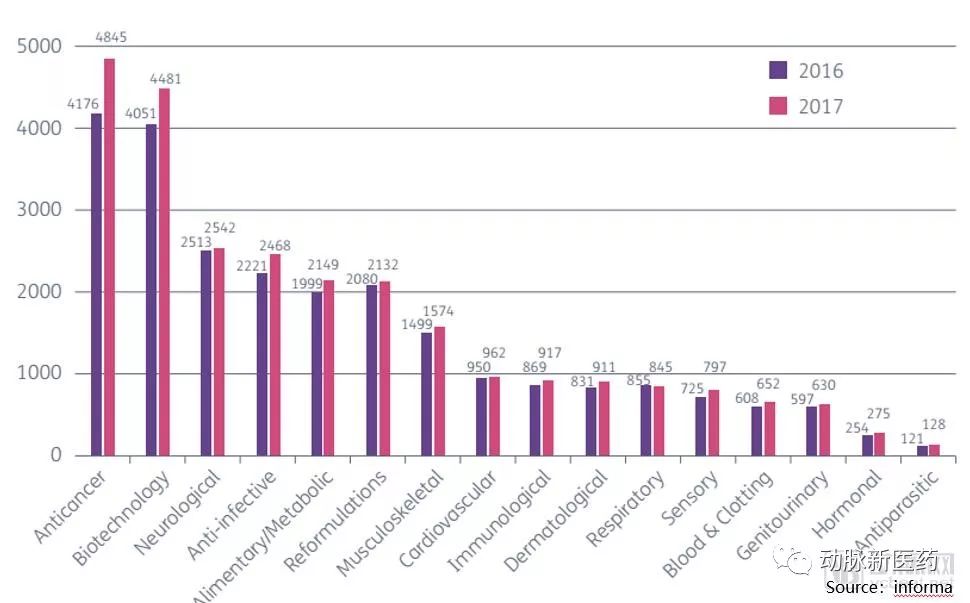 一组数据显示,目前的新药管线中,肿瘤占据了相当大的比例。2017年的管线数量为4,845个,约占全部管线的1/3,而且相对2016年同比增长16%。虽然肿瘤创新疗法绝大部分被国外的药品和技术所占据,但中国本土企业在这一轮创新周期中也萌发了自己的创新力量,为攻克这种不治之症贡献着自己的力量。