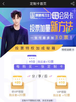 投票用钱的地方也有三个战场,一是日常投票账号,二是农夫山泉购水投票,三是爱奇艺VIP定制卡。