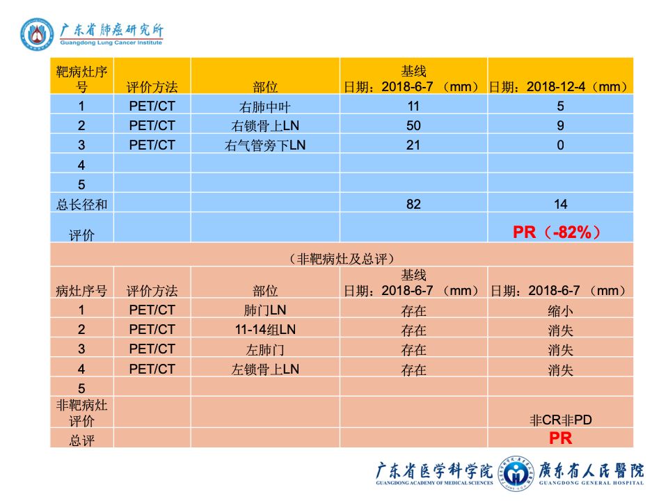 8)2018-12-04 PET/CT与2018-06-07本院PET/CT比较:原肺部病灶及淋巴结较前明显缩小,糖代谢较前明显降低。
