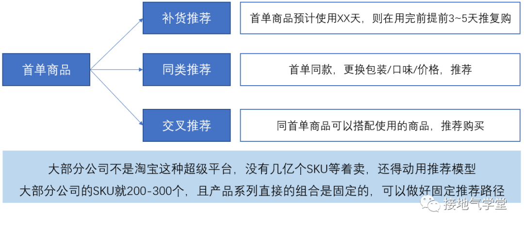 看到这里,肯定有同学会问:那如果新用户第一次消费,都是靠超低价的标品拉回来的(米、面、油、鸡蛋、纸巾、口罩……),根本所有人数据都一样,复购该咋搞。