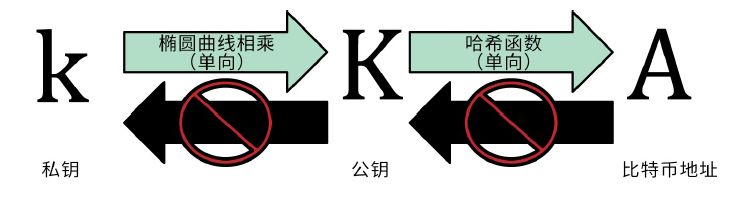 从技术上看,我们先从生成私钥开始,其次从私钥生成公钥,最后从公钥生成地址,以上每一步都是不可逆过程,也就是说无法从地址推导出公钥,从公钥推导到私钥。