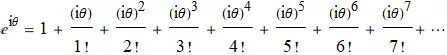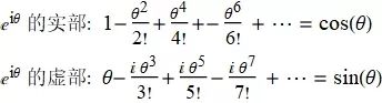 展开后整理实部系数和虚部系数, 可以推出欧拉等式 eiθ=cos(θ)+i sin(θ)