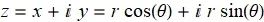 那么在复平面内极坐标为 (r, θ) 的点, 所表示的复数的笛卡尔坐标 (x= cos(θ), y=r sin(θ)) :