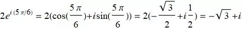 将极坐标形式的复数转成笛卡尔形式, 可以利用欧拉恒等式, 即 eiθ=cos(θ)+i sin(θ)