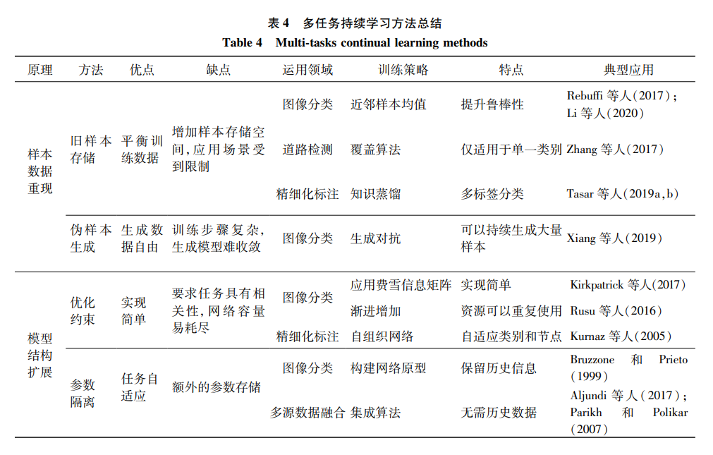 在持续学习模型训练阶段,样本集只包含当前任务样本,而先前任务的样本不可见;在持续学习模型推理阶段,要求模型对先前任务和当前任务均保持良好的预测精度。存在的方法主要分为两类:基于样本数据重现的方法以及基于模型结构扩展的方法。