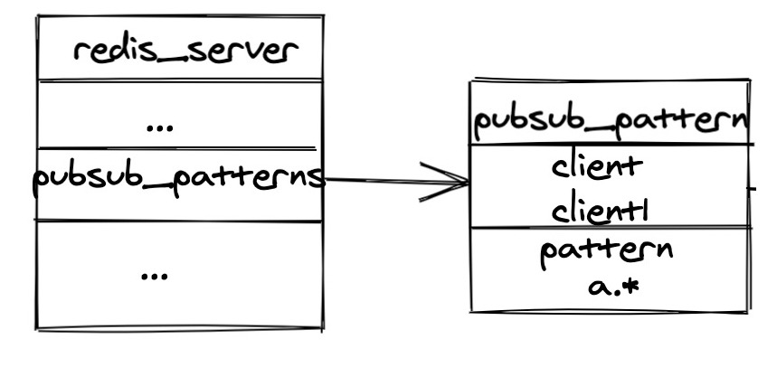 struct redisServer { // ... list *pubsub_patterns; // ...};// 链表中的每一个节点结构如下,保存着客户端与模式信息typedef struct pubsubPattern { redisClient *client; robj *pattern;} pubsubPattern;
