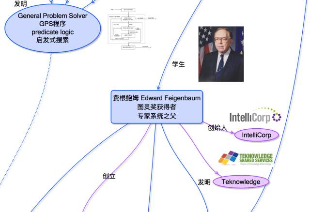 故事并没有随着Simon和他学生Newell获得图灵奖就结束。之后Simon的学生Feigenbaum,另外一个图灵奖获得者,他受到GPS的强大“刺激“”,一心想找个地方实现GPS的具体应用。 他开创了斯坦福的知识系统实验室KSL。