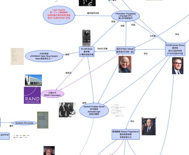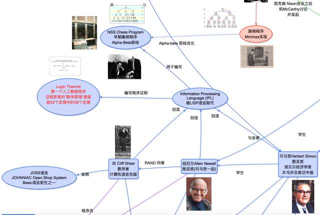 Simon带着他的学生Newell一起参加了Dartmouth会议, 随后他们一起发明了IPL语言,和McCarthy类似。 McCarthy找到IBM工作时的同事Rochester一起开发了LISP语言。 而Newell也找RAND公司的计算机同事Shaw一起, 创立了IPL语言。