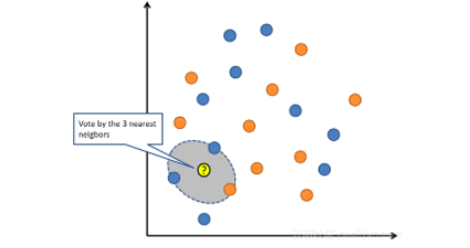 通过在整个数据集中搜索K个最相似的样本,并将这些输出变量进行汇总来预测新的数据点。对于回归问题,这可能是平均输出变量,对于分类问题,这可能是模式(或最常见的)类值。