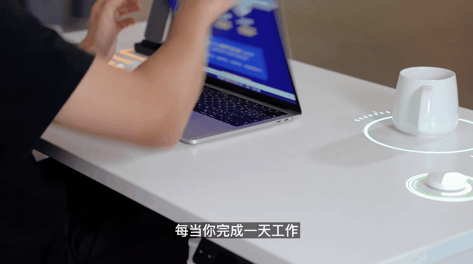 坐的时间久了,只需一拍无线开关,桌子便可一键升起。