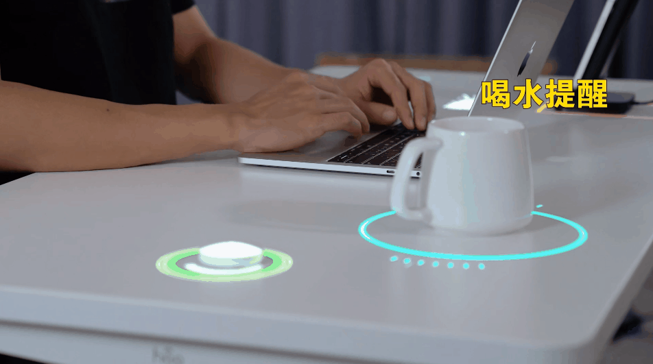 所以,up把交互动画用投影仪投影到桌面上,再在米家里设置了一些简单的智能联动。(不是广告)