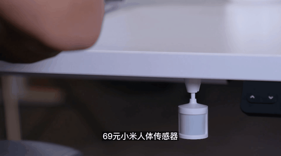 没错,up就是采用了这个方案:59元的人体传感器(视频字幕有误),3690元的远程控制升降桌,还有36元的无线开关。