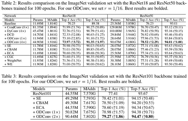 原则上来讲,这四种类型的注意力是互补的,通过渐进式对卷积 沿位置、通道、滤波器以及核等维度乘以不同的注意力将使得卷积操作对于输入存在各个维度的差异性,提供更好的性能以捕获丰富上下文信息。因此,ODCOnv可以大幅提升卷积的特征提取能力;更重要的是,采用更少卷积核的ODConv可以取得与CondConv、DyConv相当甚至更优的性能。