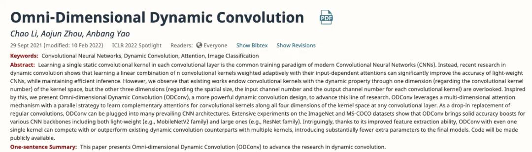 ICLR2022前段时间已经放榜,涌现了大量优秀的工作。笔者在浏览时偶然发现一篇关于动态卷积的文章ODConv(Omni-dimensional Dynamic Convolution, ODConv),Intel实验室姚安邦:https://yaoanbang.github.io/团队的工作。作为一种“即插即用”的操作,还是非常值得一读的,故做记录以飨各位。