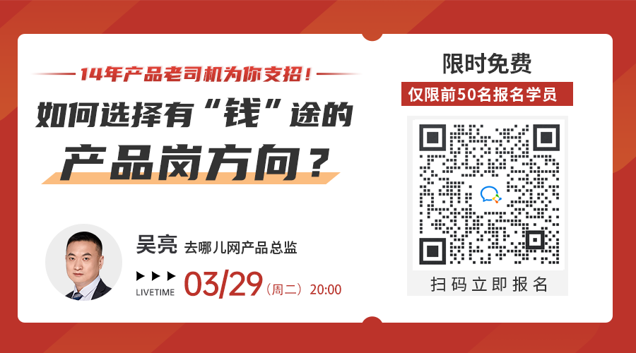 3月29日(周二)晚上20点,我们邀请了深耕互联网领域14年、前去哪儿网产品总监@吴亮老师。