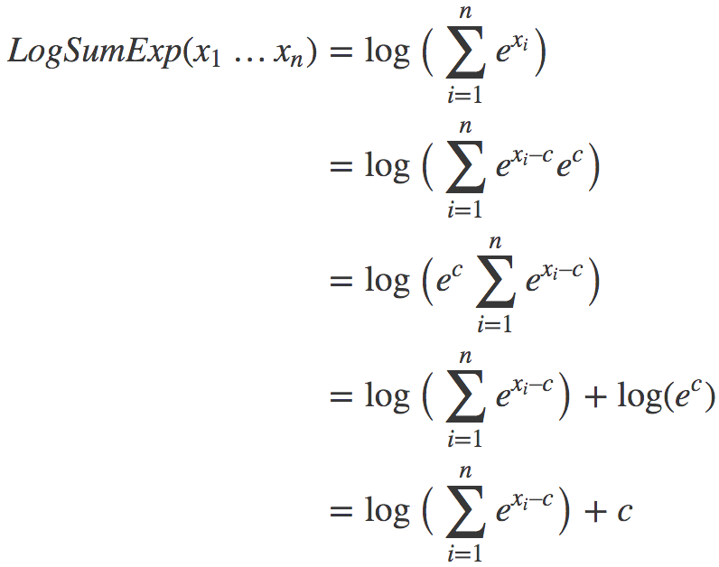 LogSumExp是一个巧妙的窍门,分解了它的机制后,实际上相当容易理解。一旦了解了LogSumExp和数值稳定性问题,你就不会感到一些库的文档和源代码难以理解了。