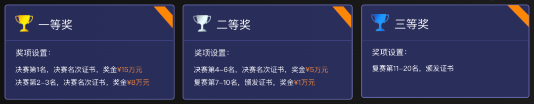 本次大赛的奖金总额是100万人民币,其中每个赛道的比赛奖金池均为50万元人民币,所有奖金均为税前金额。