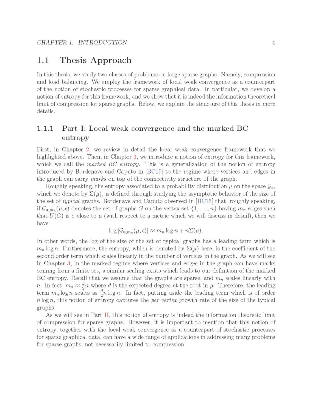 在本论文中,我们研究了两类涉及大规模稀疏图的问题,即图数据的压缩问题和网络中的负载均衡问题。我们利用局部弱收敛的框架,或所谓的目标方法来实现这一点。这个框架提供了一个观点,使人们能够理解稀疏图的平稳随机过程的概念。