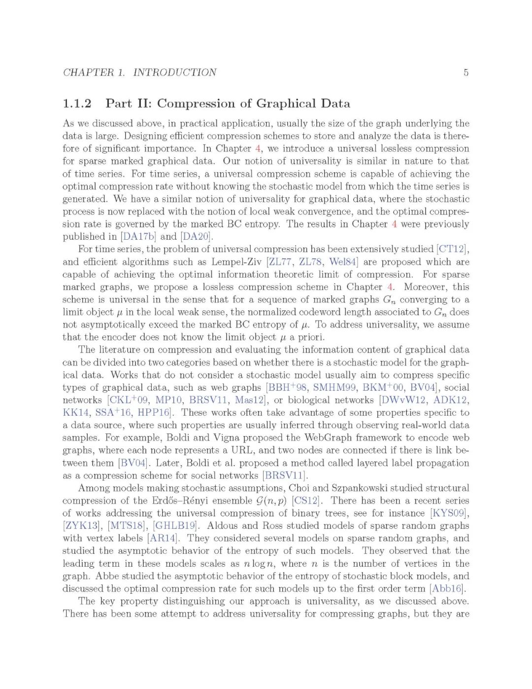 利用局部弱收敛框架,我们引入了有根图上概率分布的熵概念。这是Bordenave和Caputo将熵概念推广到顶点和边带有标记的图上。这样的标记可以表示关于真实数据的信息。这种熵的概念可以看作是稀疏图数据世界中香农熵率的自然对应。我们通过介绍一种用于稀疏标记图的通用压缩方案来说明这一点。此外,我们研究了图数据的分布式压缩。特别地,我们介绍了一个关于稀疏标记图的Slepian-Wolf定理的版本。
