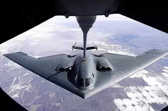美军B-2隐形轰炸机空中加油