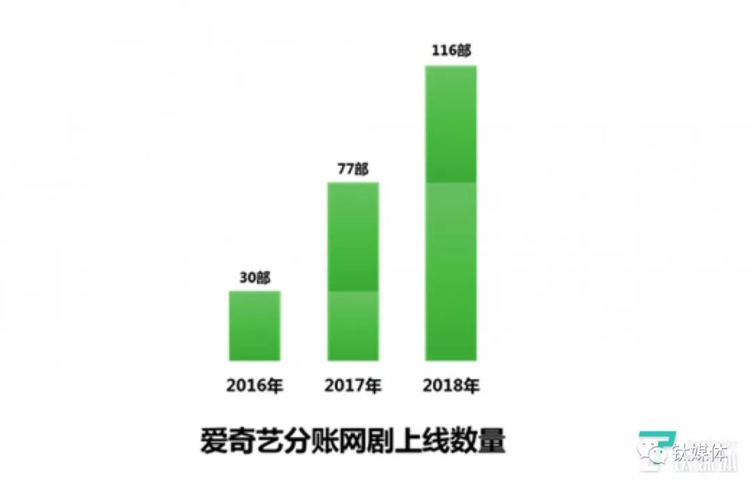 去年11月,爱奇艺公布了付费网剧分账的最新成果,2018年期间,参与上线分账的网剧为116部,其中A级优质网剧数量同比增长超50%。刚刚结束跟播期的《等到烟暖雨收》的分账金额突破3000万,是今年播期内分账金额最高的网络剧。