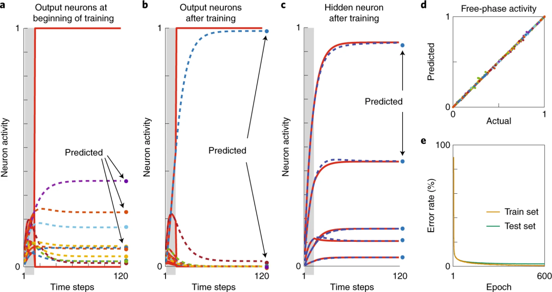 有趣的是,研究人员提出的预测学习规则也可以通过修改时间差异学习算法来获得,使其在生物学上更合理。时间差异学习是关于如何在大脑中实现类似反向传播的算法的最有希望的想法之一。它基于使用神经元活动的差异来近似自上而下的误差信号。这种算法的一个典型例子是对比赫布(Hebbian)学习,它被证明在某些假设下等同于反向传播。