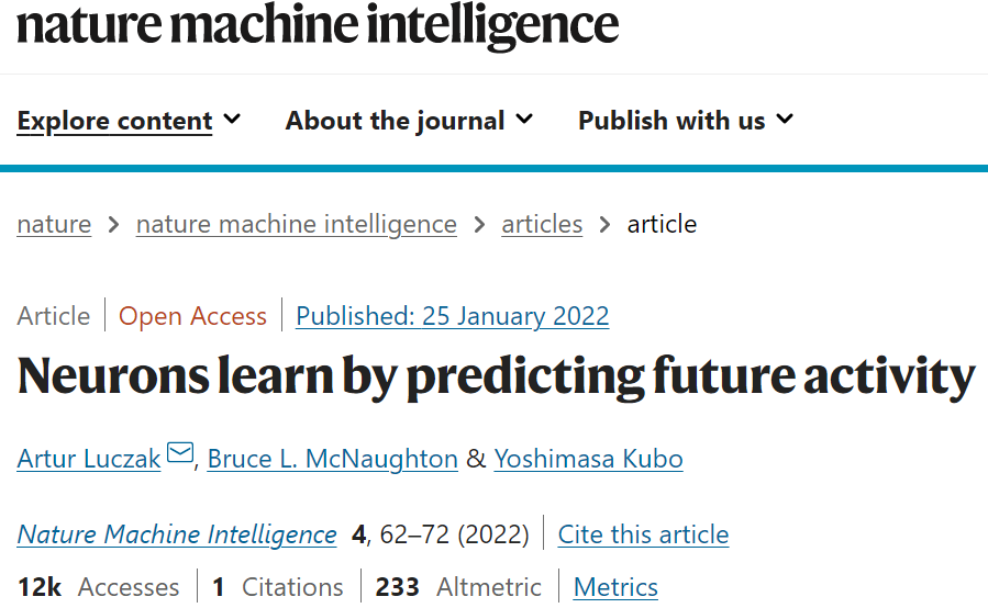 该研究结果以「Neurons learn by predicting future activity」为题,于 2 月 25 日发表在《Nature Machine Intelligence》上。