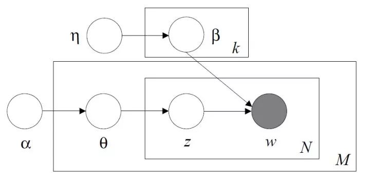 为文档的主题分布,w为文档的词,z为w所对应的主题。