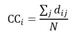 节点的接近性是指节点到其他节点的最短路径之和的倒数,表示的是信息传播的紧密程度,其计算公式为: