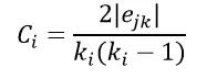 节点的集聚系数是它的相邻的节点之间的连接数与他们所有可能存在来链接的数量的比值,用来描述图的顶点之间阶级成团的程度的系数,计算公式如下:
