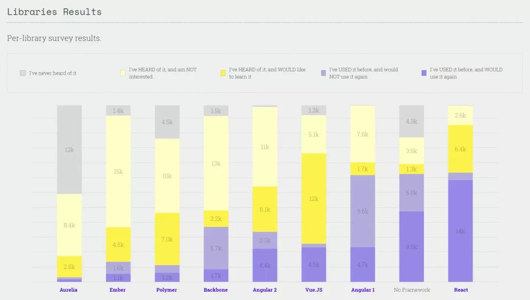 请看 2017 年 JavaScript 状态调查报告的这张幻灯片: